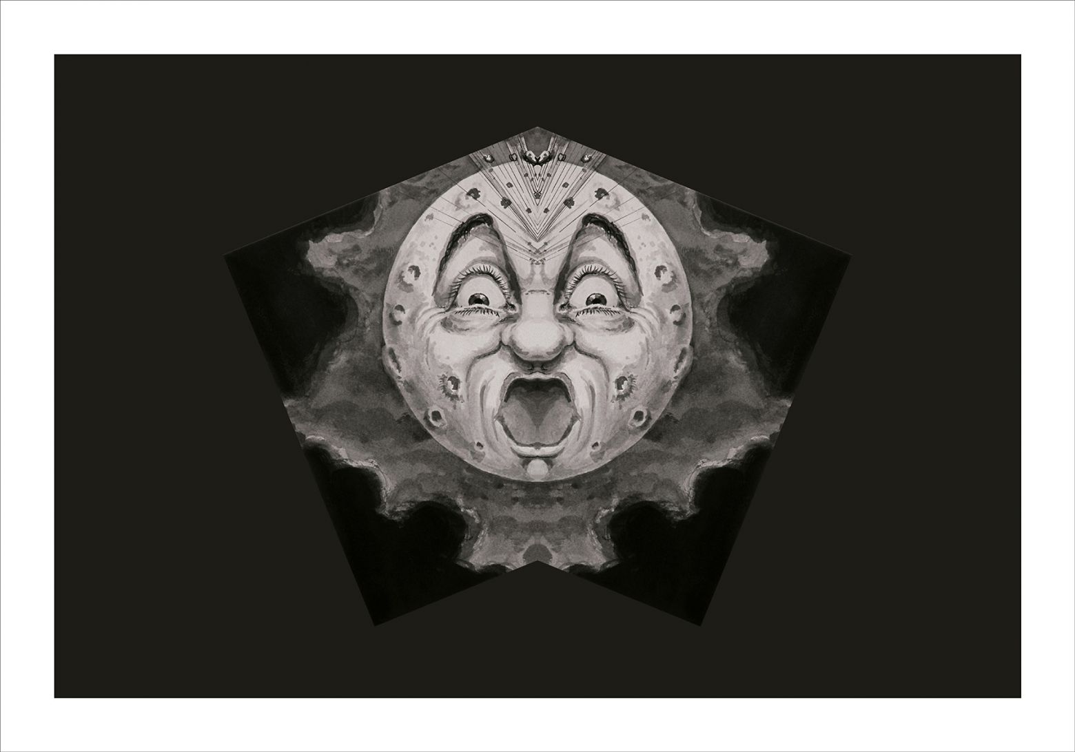 Photomontages à partir d'un dessin préparatoire original de Georges Méliès pour son film Le voyage dans la lune (1902).