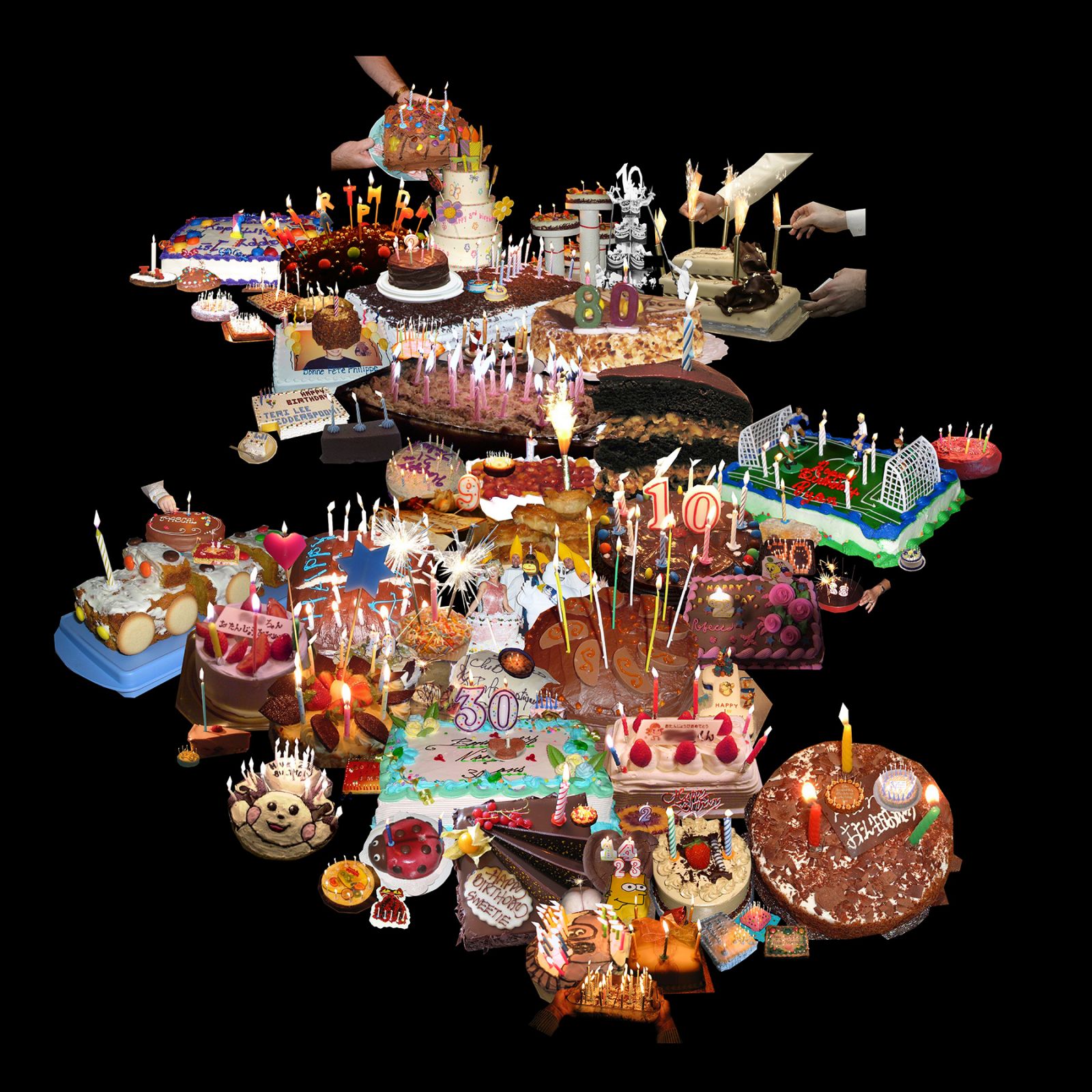 Photomontage d'images de gâteaux d'anniversaires glanées sur internet.