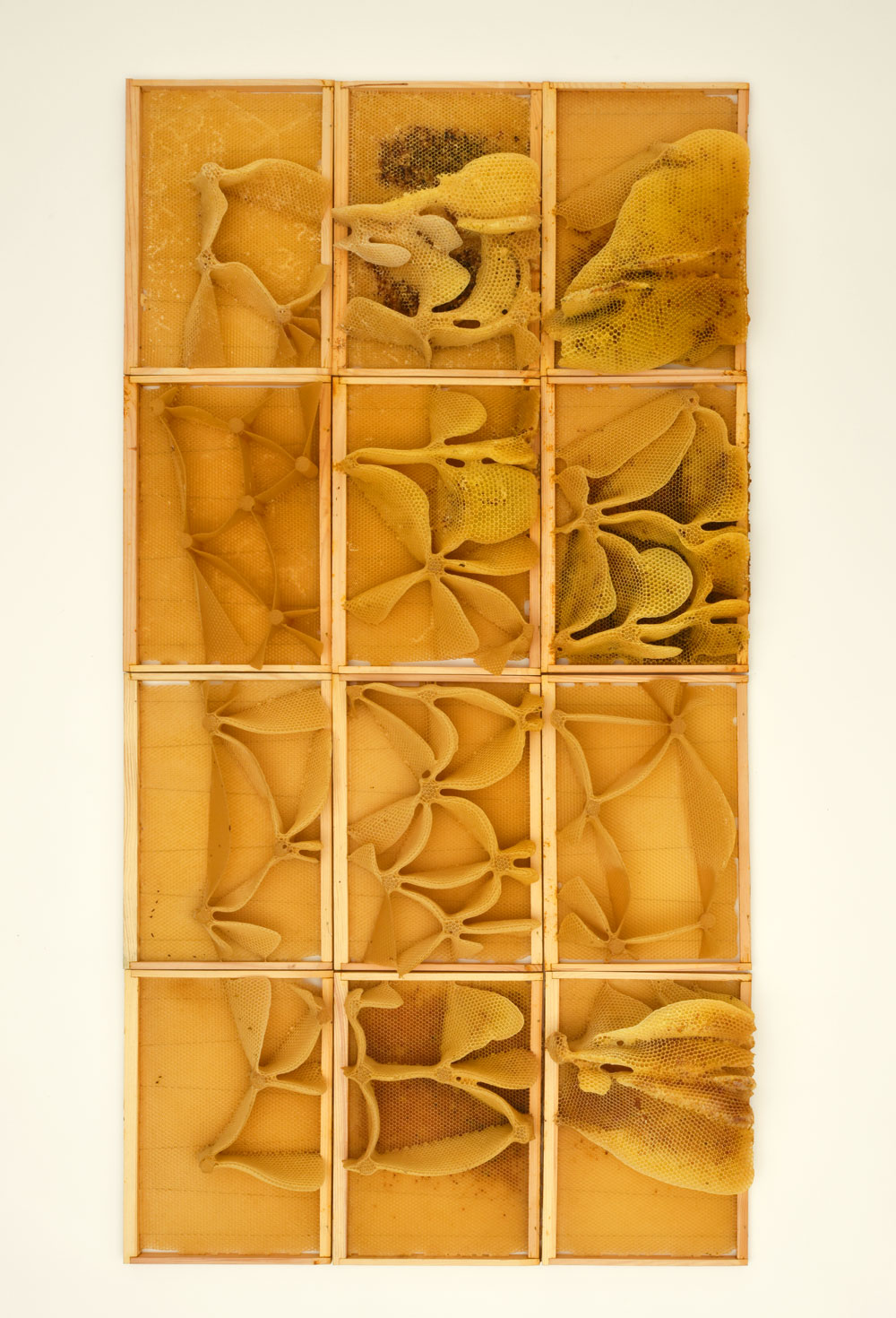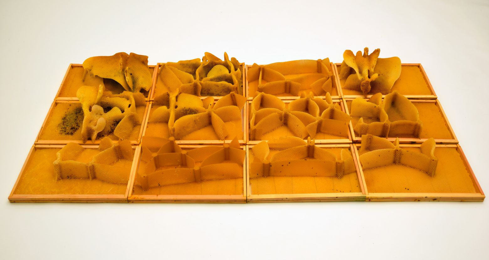 Le projet « Les Palais » détourne les plaques de cire gaufrée dont se servent les apiculteurs pour assister les abeilles dans l’échafaudage de leurs alvéoles, bases de la ruche, recueil du miel et des larves. Il soumet à des colonies d’abeilles et à leur ingénierie les plans de complexes architecturaux humanistes, dédiés à l’humanité, dans une utopie de société solidaire et progressiste : des utopies du Phalanstère, Palais Sociétaire imaginé par Charles Fourier au XIXe siècle ; à la Station Orbitale dessinée début XXe par l’ingénieur Herman Potočnik dit Noordung, qui assurerait dans l’espace un habitat « de secours » dans lequel serait recréée la gravité terrestre ; en passant par le métavers d’un internet libre et distribué.