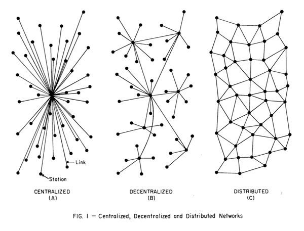 Introduction to Distributed Communications Networks, schéma de Paul Baran, 1964