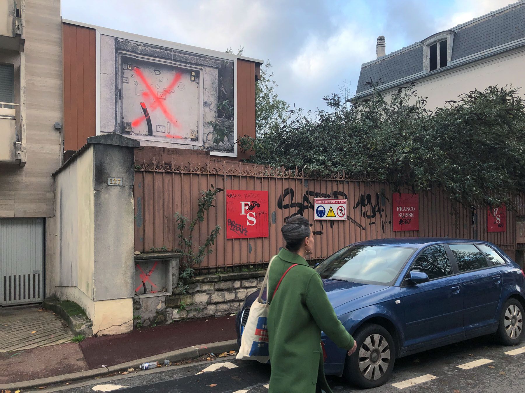 Pendant le confinement à l’automne 2020, l’artiste et chercheur Jérôme de Vienne, a repeint en blanc (à l’exception de l’amorce rouge ici prochainement) un panneau 4 x 3 (image en page d’accueil) où le groupe « Franco Suisse », dans une froide illustration, annonçait un projet immobilier dévastateur pour sa maison d’enfance. À partir de son geste inaugural et de ce compte à rebours aussi pressant qu’incertain, Jérôme a fait du panneau le lieu d’une programmation artistique sauvage. J’ai réalisé le dernier épisode après Julien Van Anholt, Fanny Pratt, Jackson B. Smith et Jérôme de Vienne.