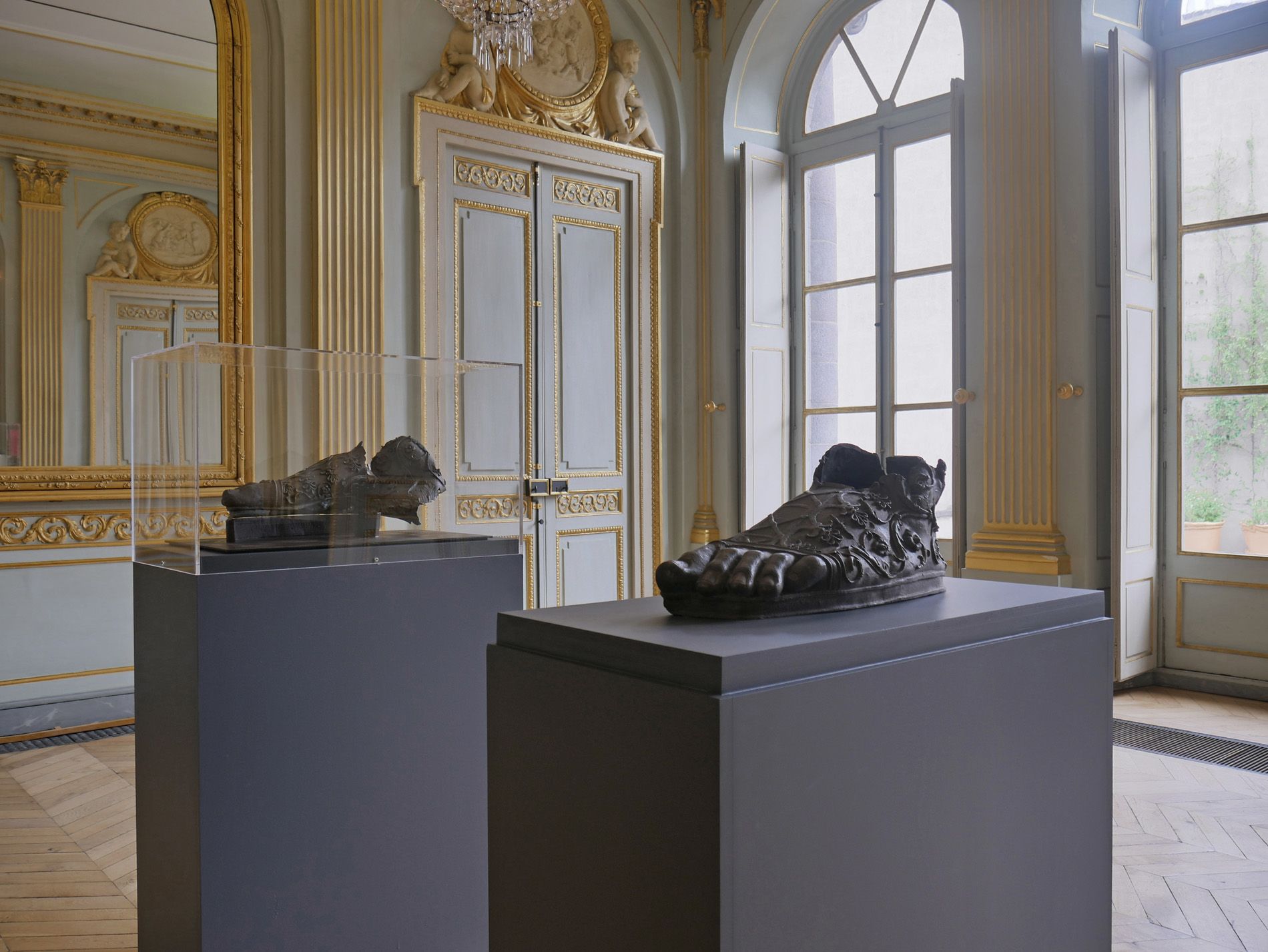 Le pied droit antique photographié dans les miroirs du salon doré de la DRAC Auvergne en janvier 2014