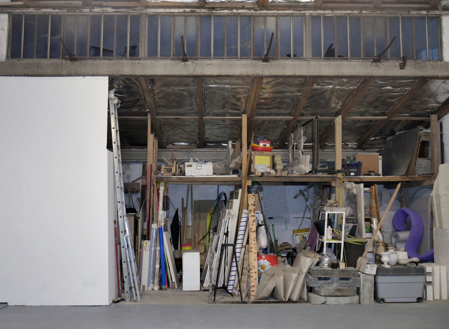 La verrière brisée du lieu au-dessus du lieu de stockage des artistes travaillant à l'Atelier SUMO