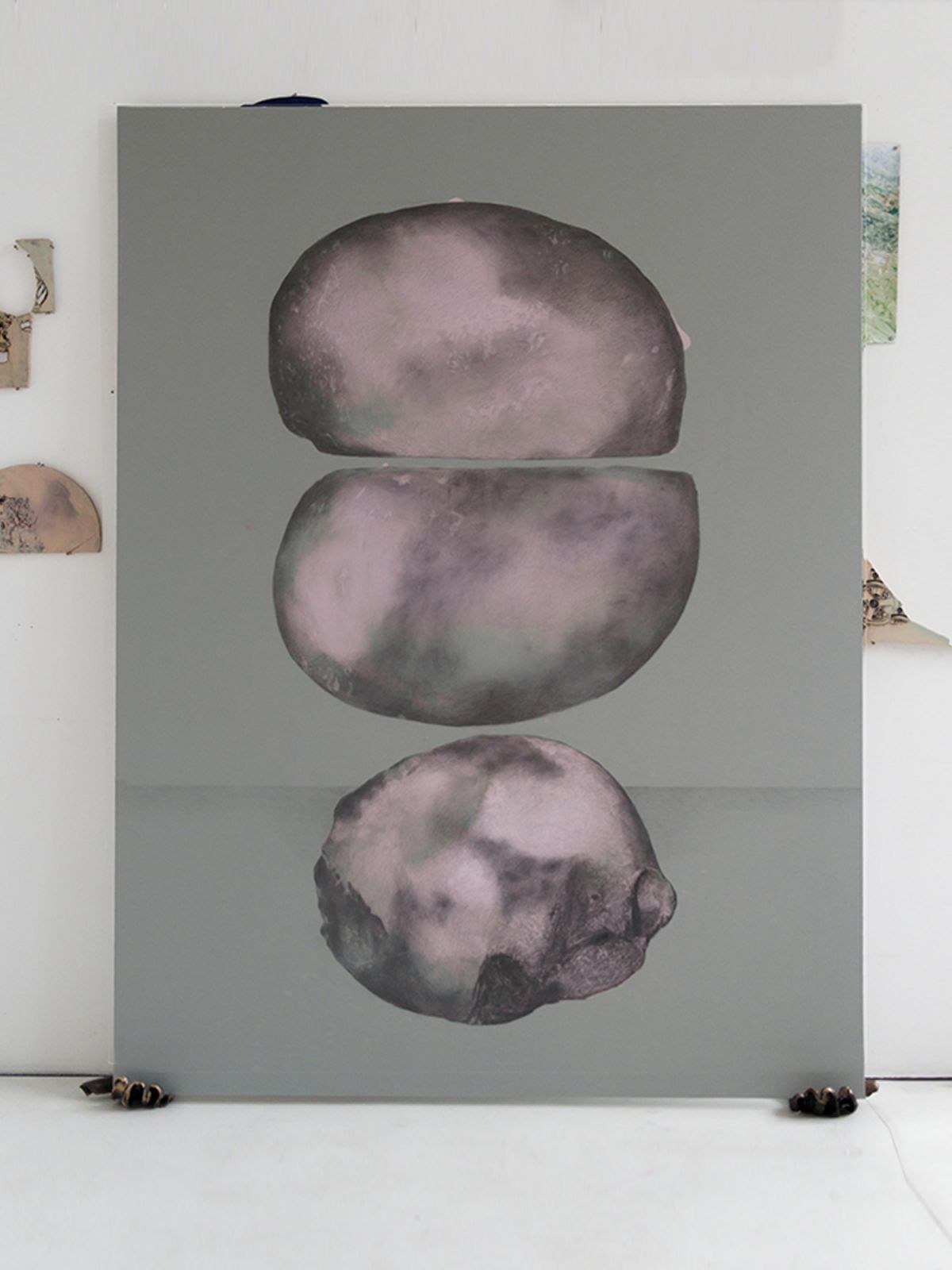 Javel, crayon et graphite sur papier vert de gris marouflé sur bois, 90 x 70 cm