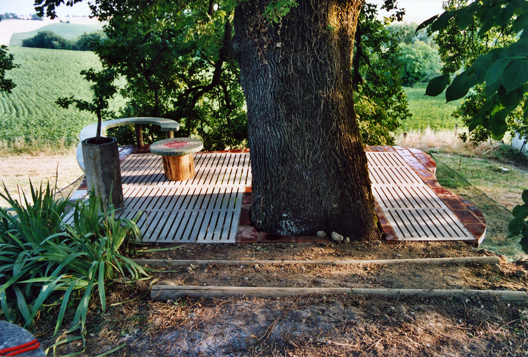 Installation / terrasse dans le jardin de la famille Huc, Fiac