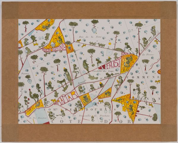 Dessin, encre et aquarelle sur cartes géographiques, dimensions variables