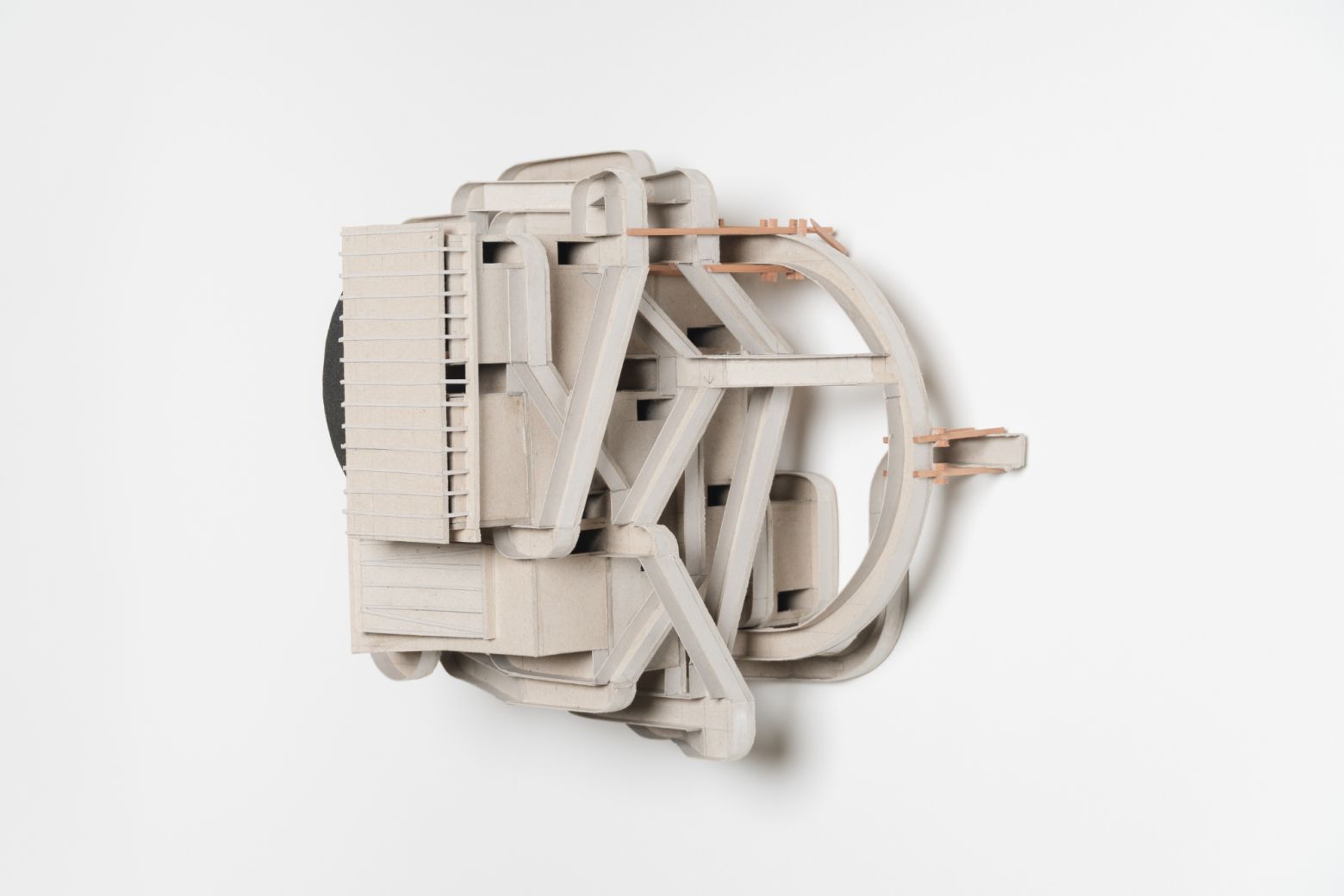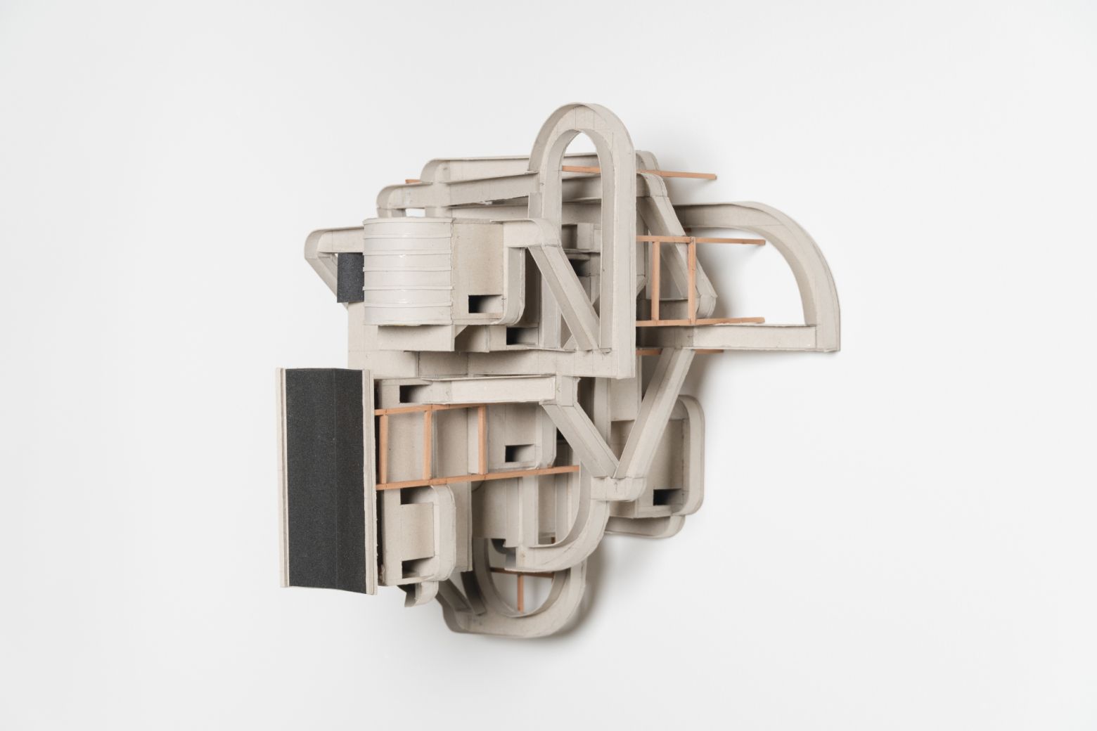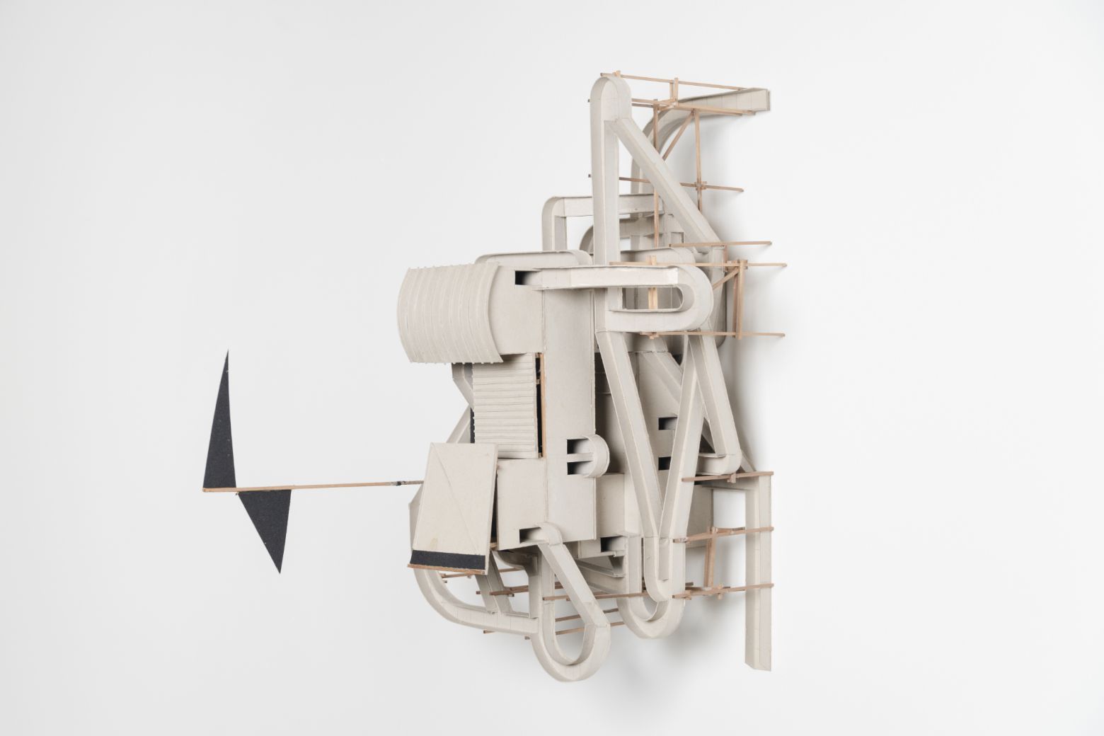 "Les maquettes – à supposer qu’elles soient maquettes – naissent d’un texte mis au jour par un processus d’archéologie inversée en empruntant le chemin du braille. En effet, l’artiste « relit » un texte de Diderot en le soumettant à une variation résumée en quelques lettres B-O-U-C-H-E-R-A-D-I-N-F-G ; ces dernières étant la contraction des noms des artistes, objets du commentaire du philosophe : Boucher, Baudouin et Fragonard. Chaque objet-maquette présente une variation sonore possible mise en volume après un passage par l’écriture en braille. Nous disons bien sonore et non visuel. Car il ne s’agit pas pour l’artiste de voir, mais d’entendre des volumes, comme il exige de nous de regarder des sonorités à la manière d’un synesthète. Et si la maquette au mur fait disparaître le volume, les photographies, au mur elles aussi, creusent le volume à nouveau dans une fiction d’exposition." — Abdelkader Damani
