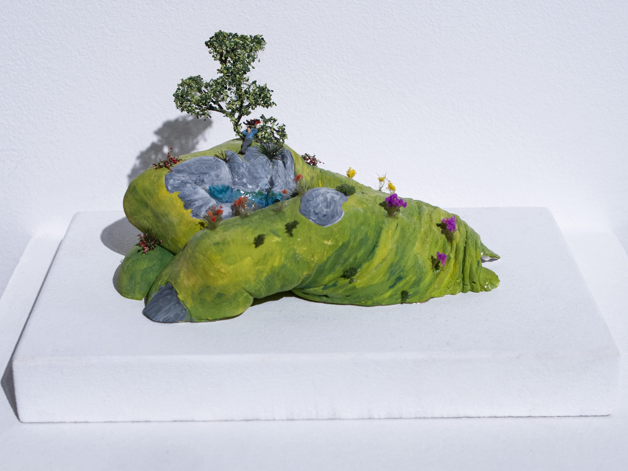 Moulages de parties du corps d’une femme âgée. Actes de résistance poétique, ces empreintes deviennent des paysages habités de personnages et d’animaux. La peau ridée, où transparaît chaque détail de la vieillesse, est sublimée.