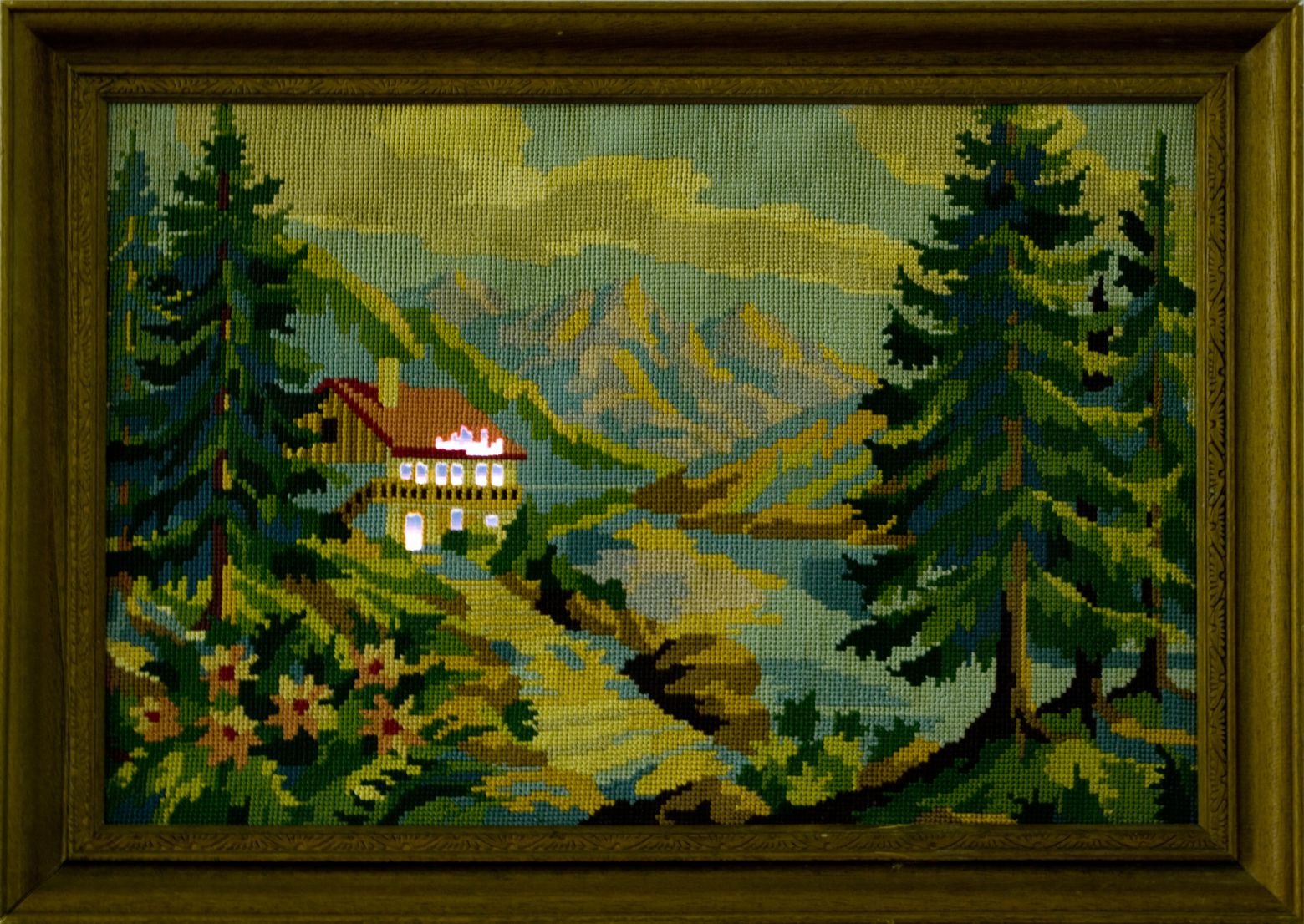 Vidéo en boucle, écran LCD, DVD, canevas, 60 x 40 cm