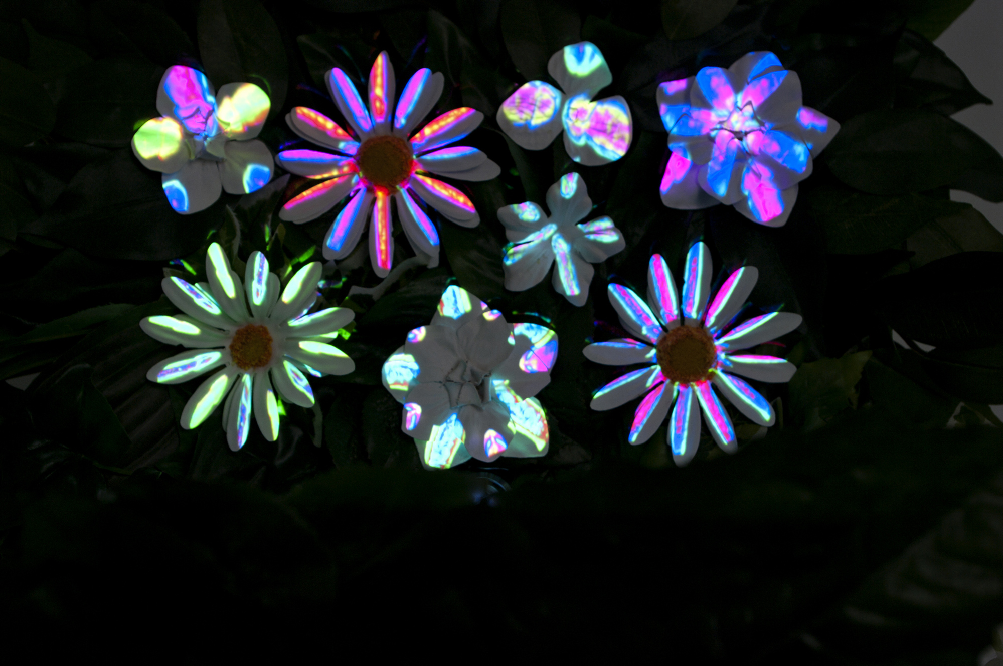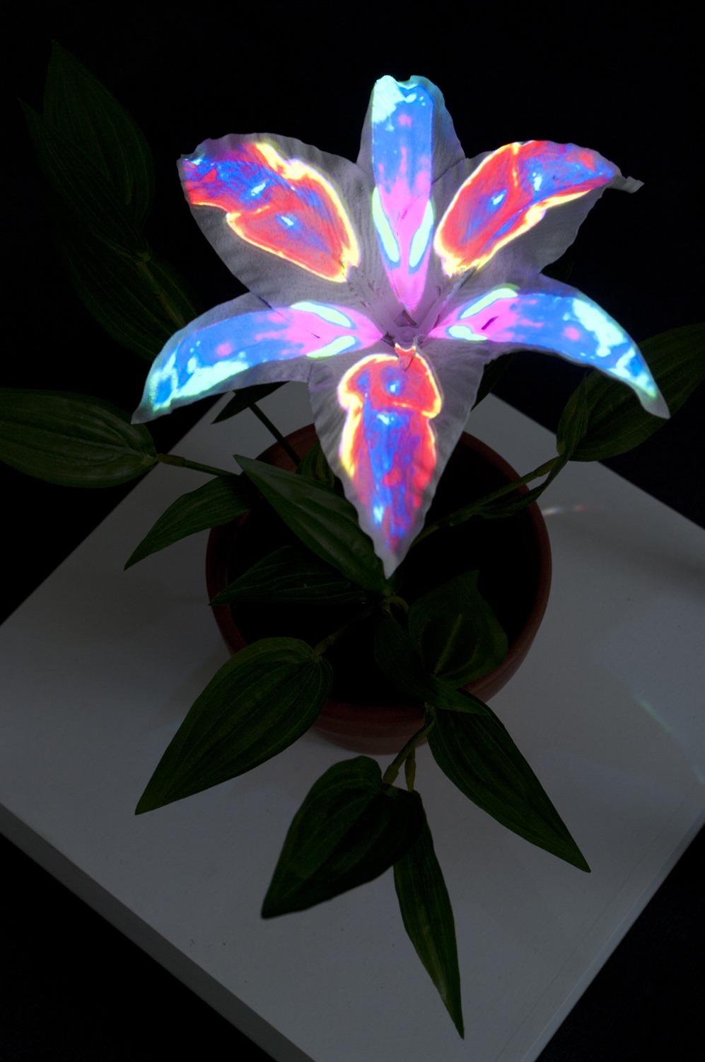 Vidéoprojection de pénis en érection aux couleurs psychédéliques butinants des fleurs. Les mouvements langoureux des images projetées forment une danse amoureuse entre douceur et passion. Symbiose poétique de l’animal et du végétal dans une explosion de couleurs chatoyantes.