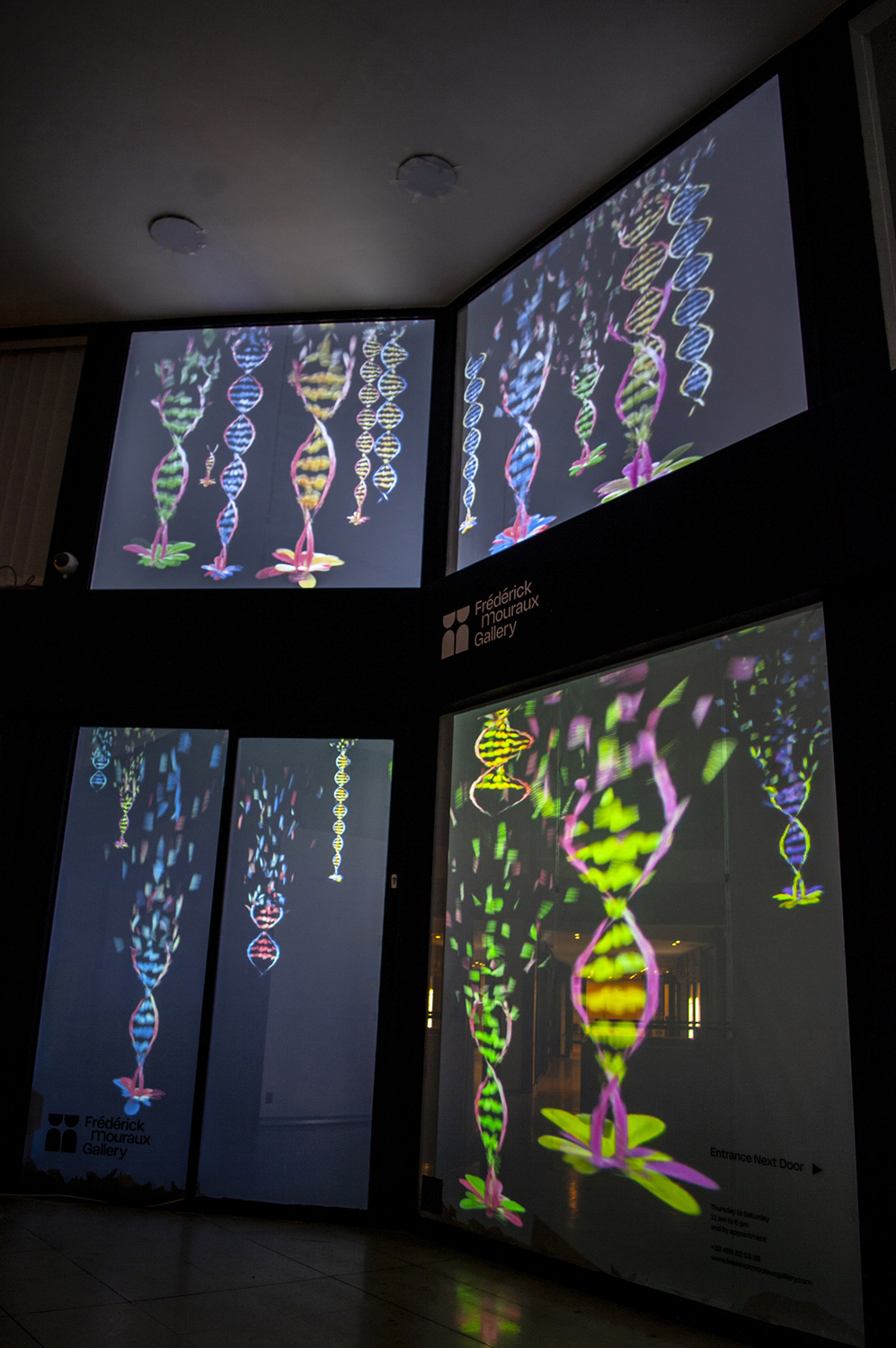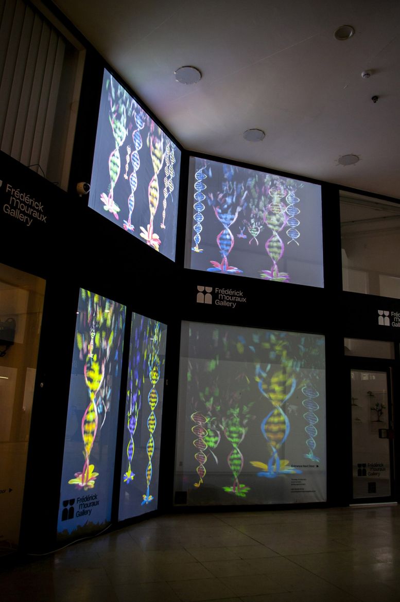 Projection vidéo d’animations de fleurs où les pétales s’envolent pour former une ellipse d’ADN. Le visiteur est confronté physiquement à l'image en mouvement dans une relation monumentale et poétique à la vidéo et à l'architecture.