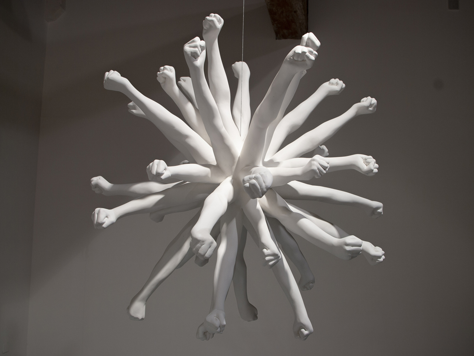 Moulage de poings levés d’une femme, geste anti-phallocratique dans l’histoire de la représentation des corps illustrant les combats, symbole des révolutions à mener pour l’égalité de droits entre les sexes.