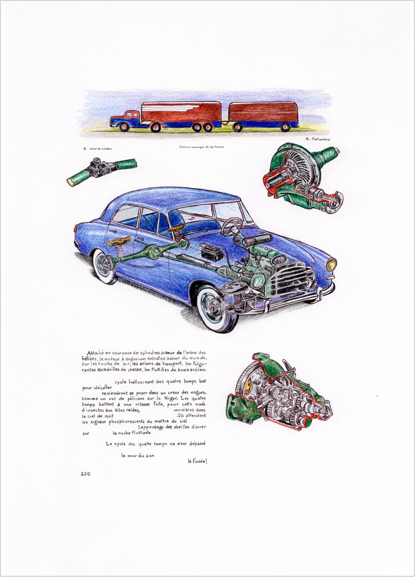 Car bien peu de chose a priori témoigne ici de l'idée de nature, puisque s'y trouve aussi bien un dessin en coupe d'un avion monoplace à hélice qu'un scaphandrier, un peintre en bâtiment et la tête d'un lapin, un combat de boxe et des racines comestibles... « Nature : ensemble des choses qui existent réellement... », indique pourtant de façon générale la définition du dictionnaire Larousse, ceci laissant donc à penser que les sujets réunis ici seraient une proposition élargie de ce que Buffon, souhaitant couvrir tous les règnes de la nature, proposait au 16ème siècle dans ses ouvrages encyclopédiques. Ainsi, « L'intérieur, dans les êtres vivants, est le fond du dessin de la nature », écrivait-il dans l'un de ses chapitres dédié aux quadrupèdes.