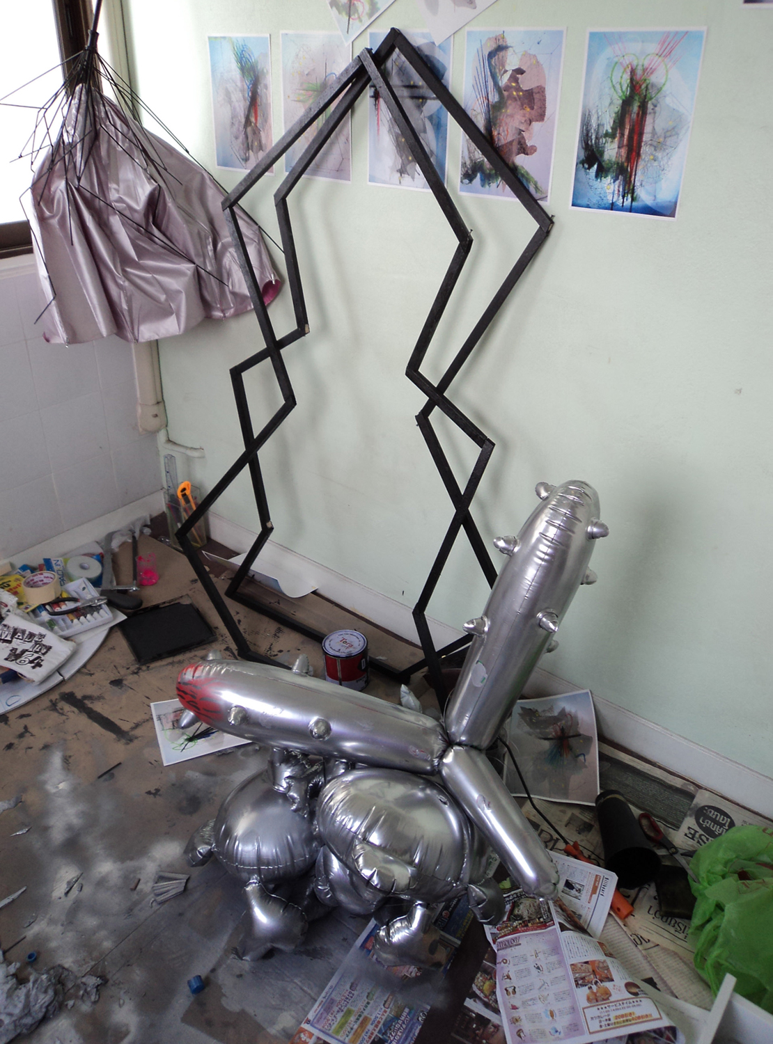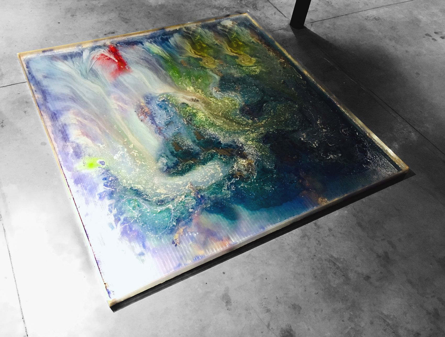 Bouée gonflable, poudre de granit, marbre, crêpes