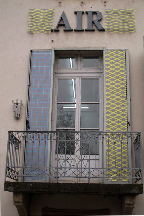 Performance publique, 2015 : reproduire le motif peint sur une fenêtre puis cacher certaines lettres du mot "mairie".