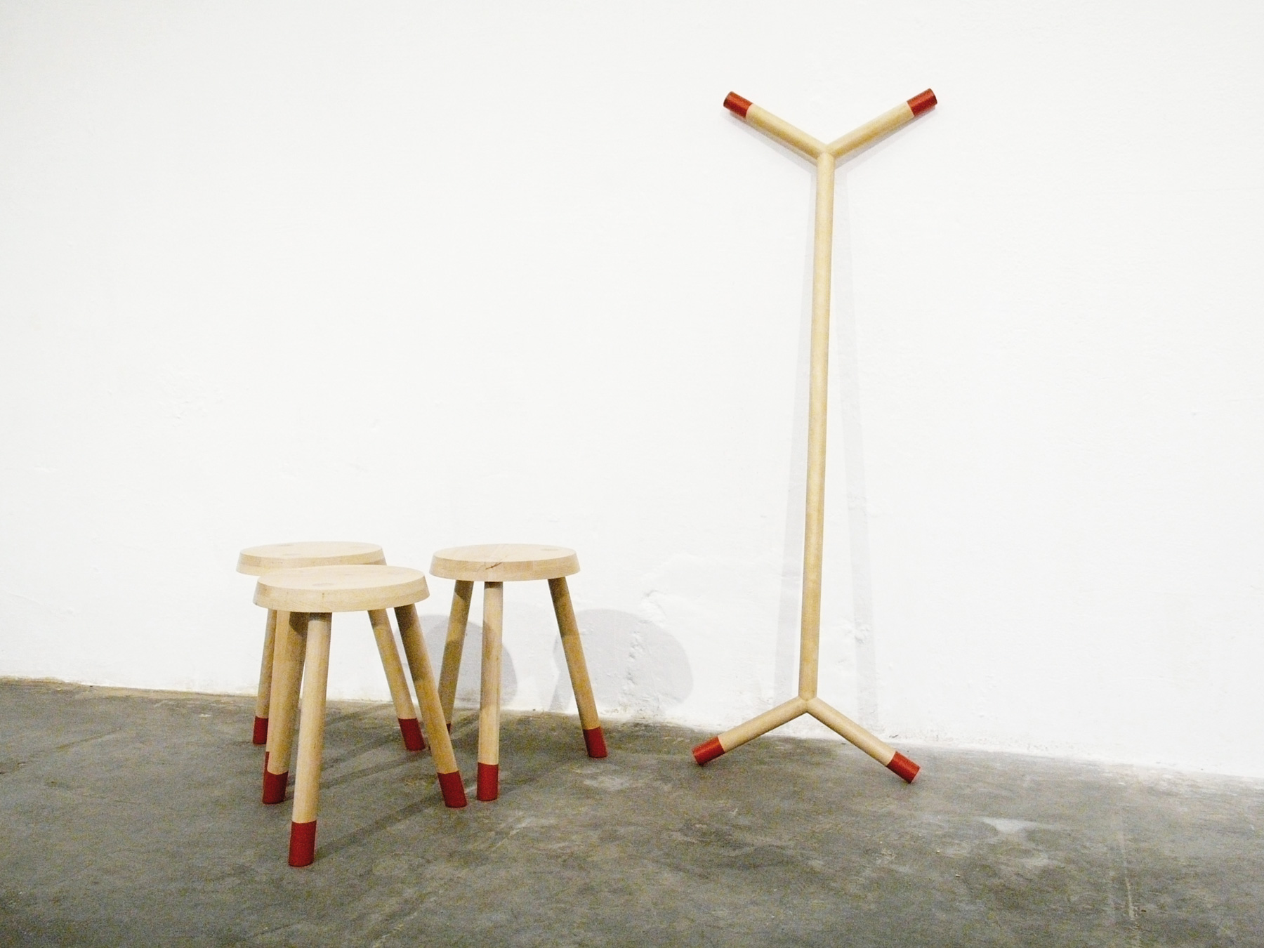 Ce mobilier d'appoint tente de redéfinir des accroches et des supports dans l'habitat, en proposant des objets polyvalents dont la fonction se définit par leurs emplacements et leurs utilisations.