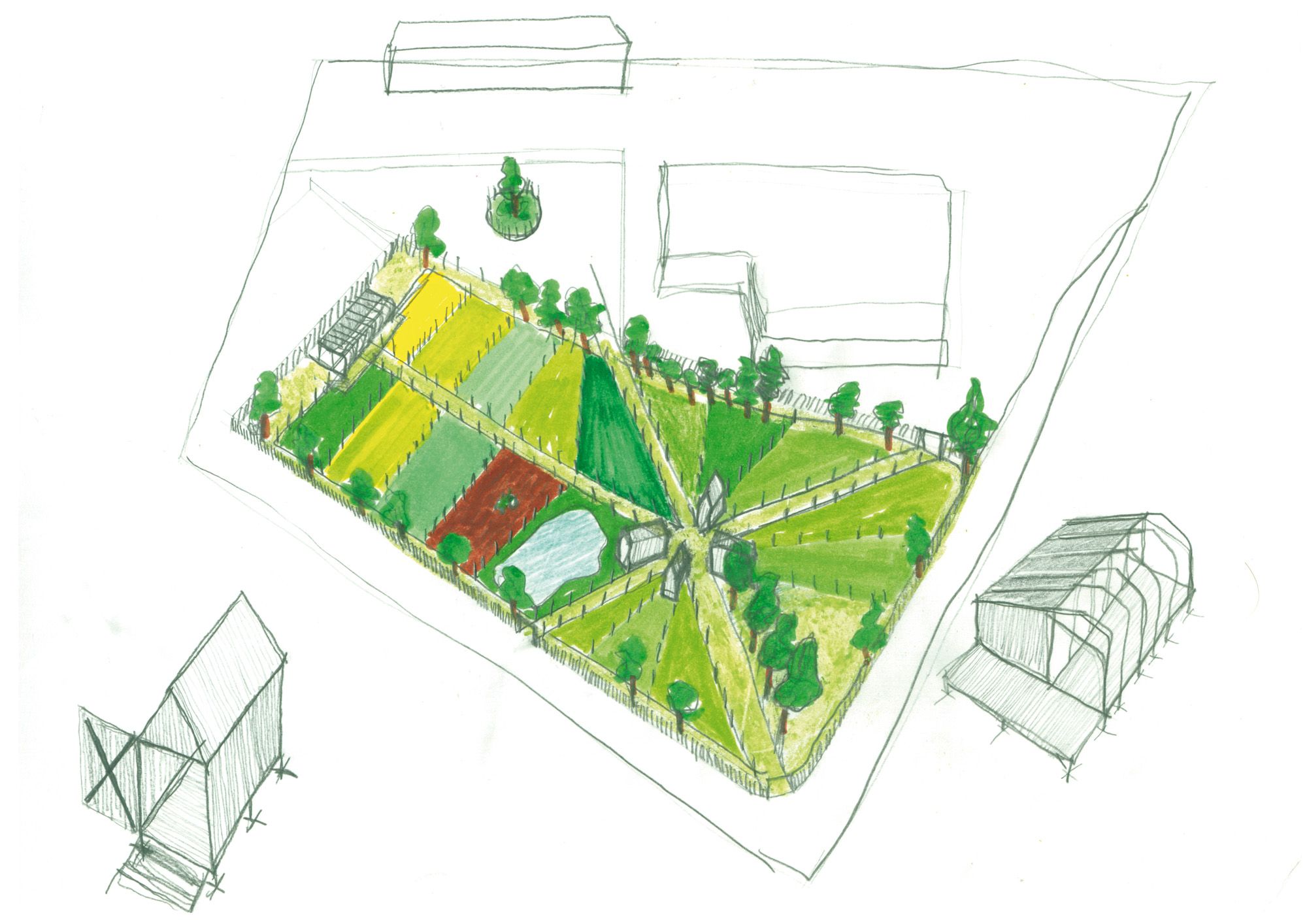 Celui-ci a été dessiné à la manière d'un champ qui s'inscrirait dans le paysage urbain.