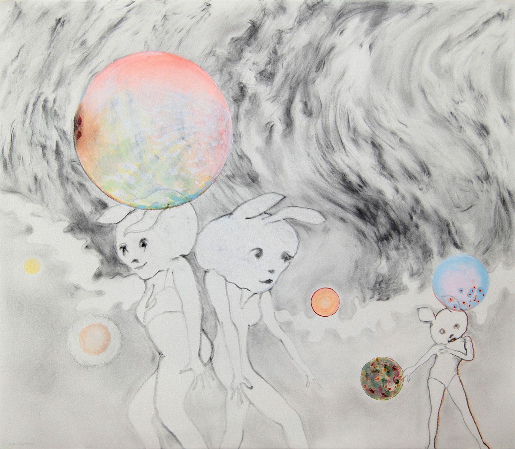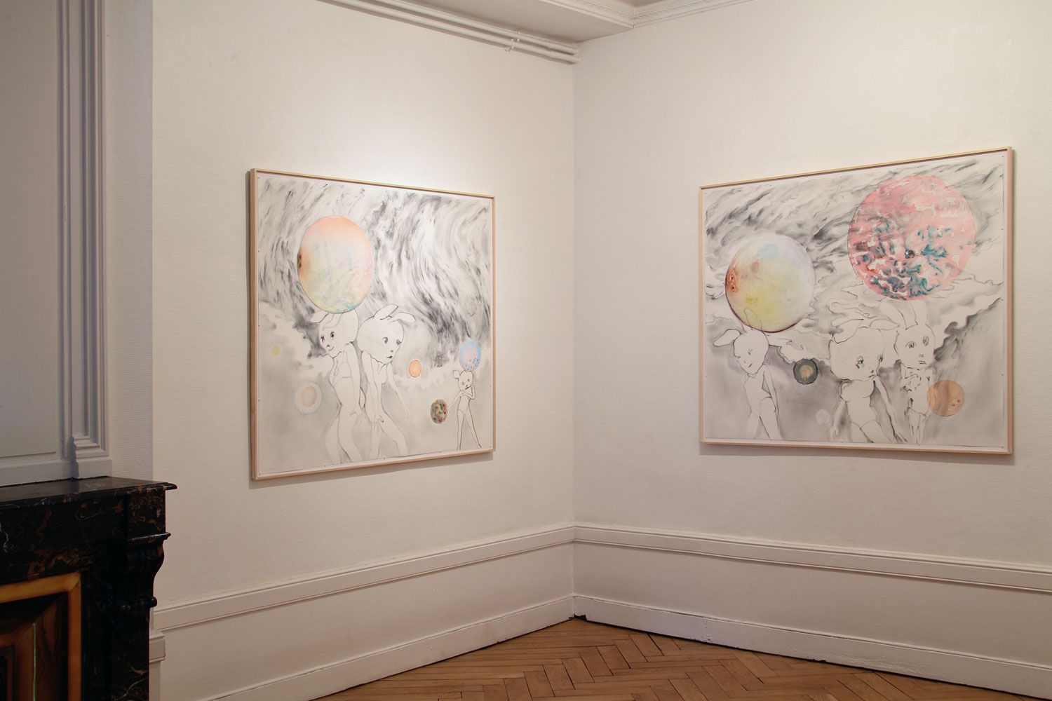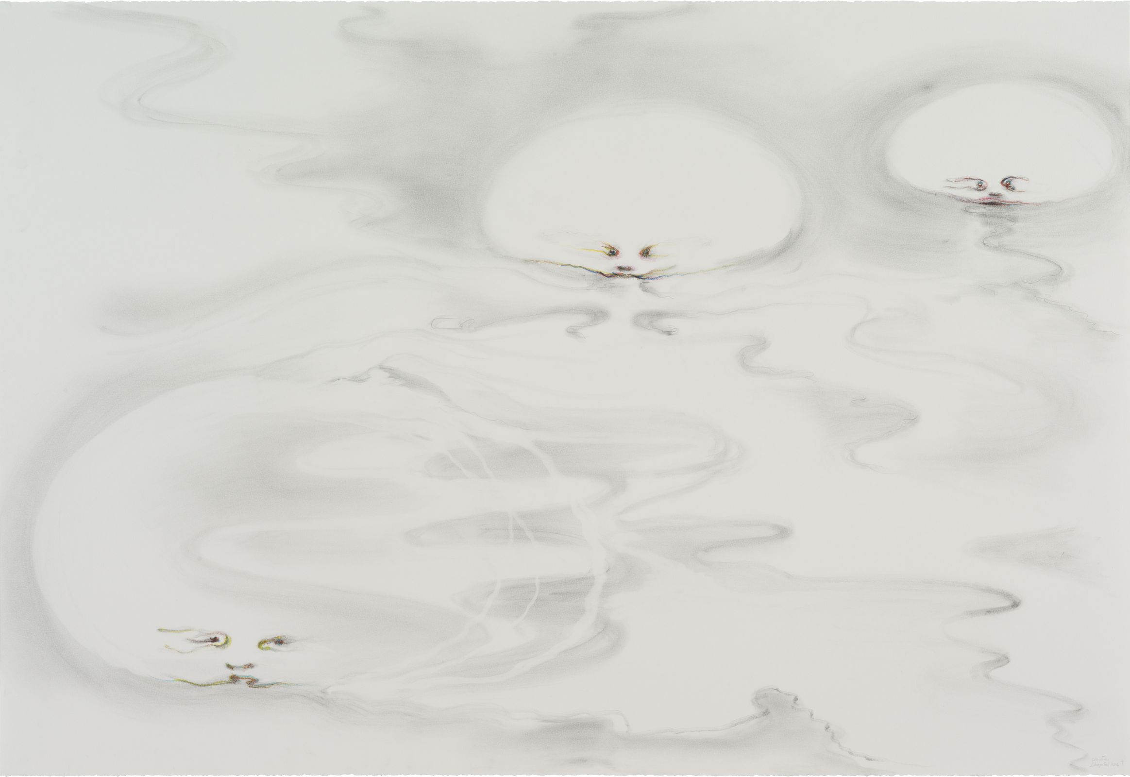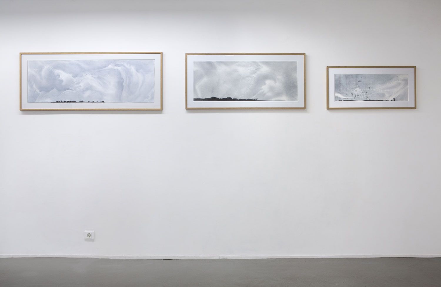 3 dessins, poudre de graphite et aquarelle sur papier, 132 x 115 cm