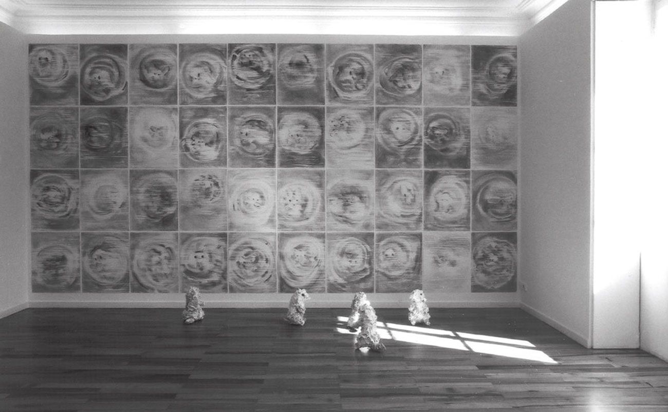 14 dessins, poudre de graphite, crayon, gesso, mine de plomb et acrylique sur papier, 132 x 114 cm