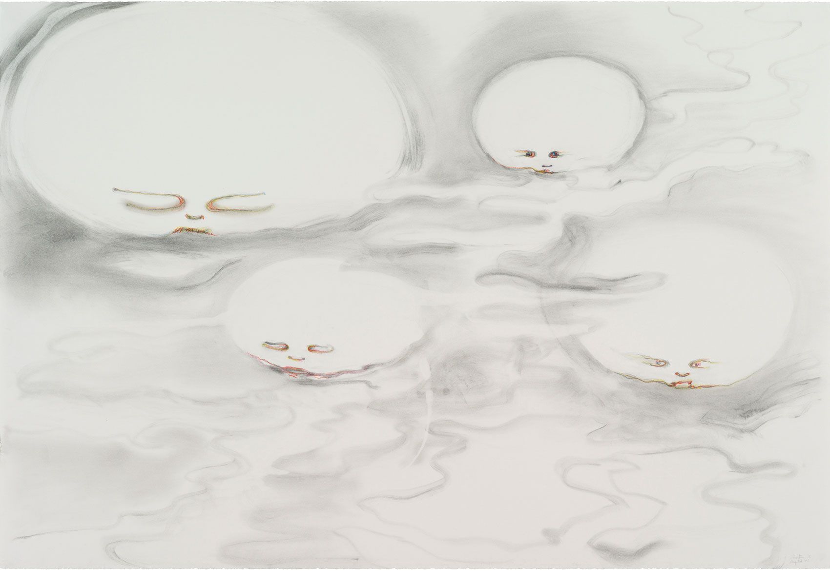 4 dessins, poudre de graphite, crayons de couleur sur papier, 77 x 112 cm