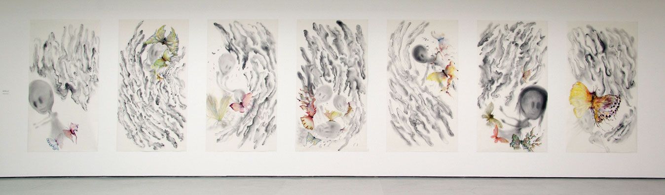 7 dessins, aquarelle et crayons sur papier, 134 x 114 cm