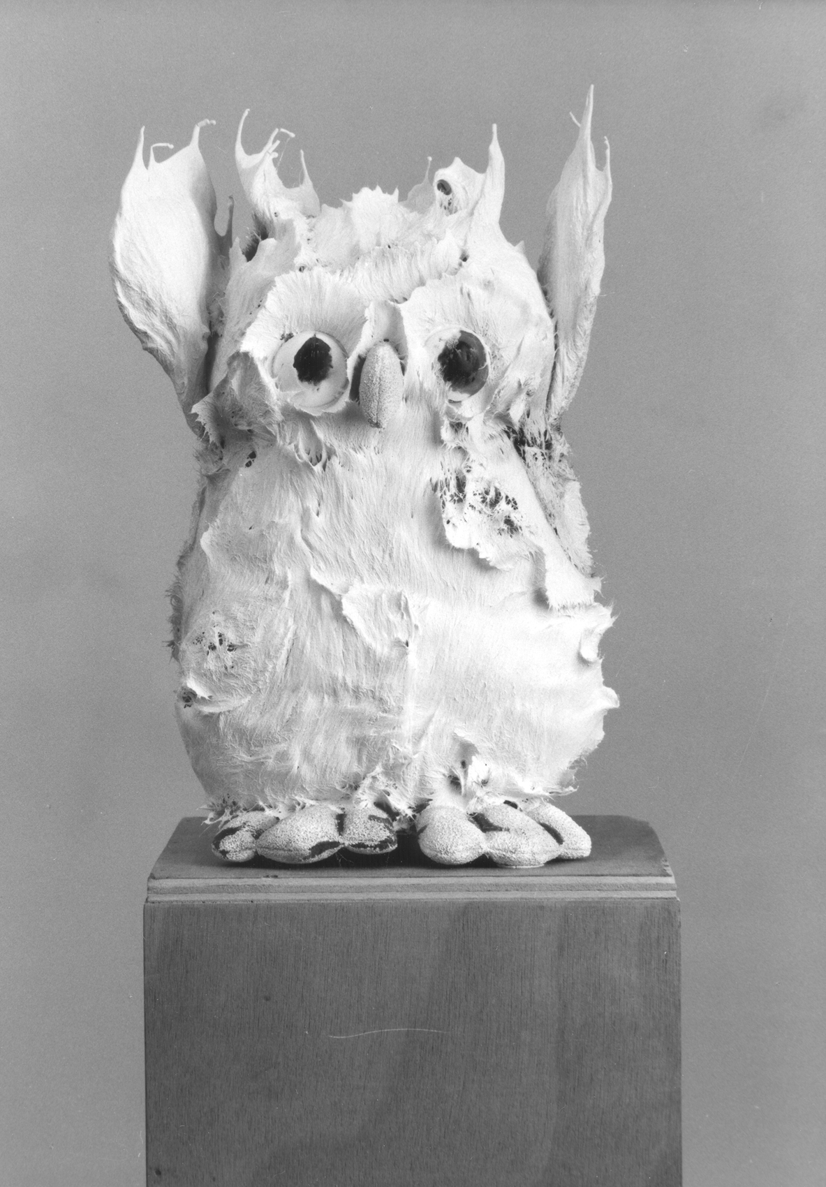 Peluche, pâte plastique, fil de fer, peinture, 59 x 15 x 15 + socle 80 x 59 x 15 cm