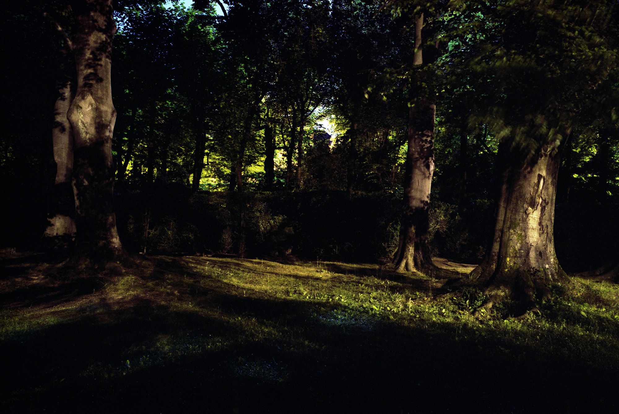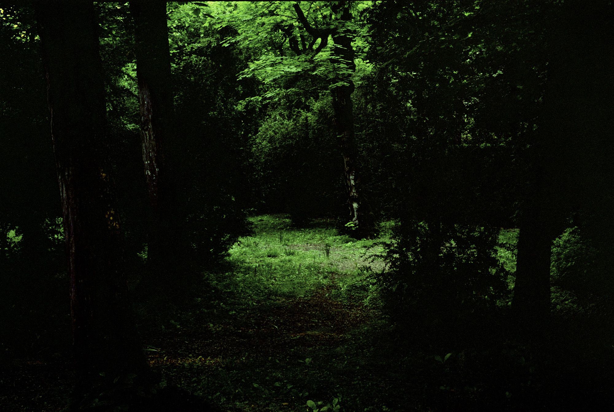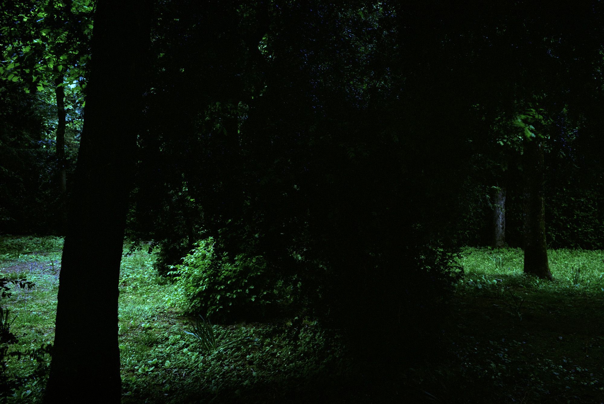 Eric Hurtado laisse le paysage venir à lui et se fondre en lui. L'angle de vue choisi, il installe son appareil argentique et guette patiemment l'heure propice. Le moment, où plutôt les minutes, où la lumière glisse dans la nuit et donne sens au sujet qu'il fixe ; l'instant où les éléments s'atomisent et s'offrent alors au photographe : gouffres d'ombre qu'un clair de lune saupoudre d'éclats lumineux. Il joue sur l'effacement dans la profondeur, espace indéfini gagné par l'obscurité. Mais l'imprécis de certaines zones de l'image semble contredit par la netteté des plans, obtenue par la pose prolongée et la fermeture du diaphragme. Le regard s'y perd tout en laissant au spectateur la liberté de recréer sa propre fiction.