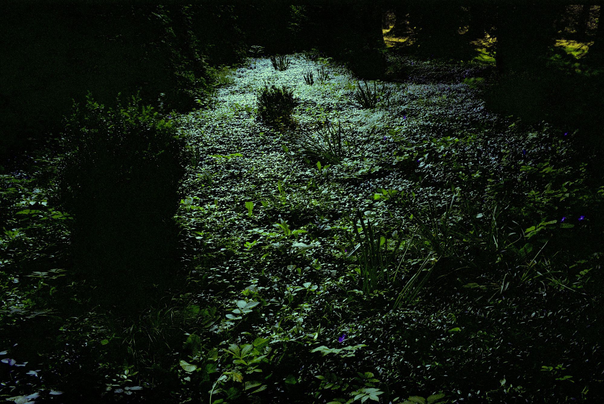 L'exposition « Le point aveugle » est née d'une double rencontre, celle d'Eric Hurtado avec la maison et les jardins d'Ernest Hébert, un « lieu habité par la peinture » comme il aime à le dire et celle avec le peintre paysagiste Jean Achard, présenté dans la grande galerie cette même année. Si le photographe « ne fait qu'aider l'image à se faire » comme le note Arnaud Claas, il partage avec le peintre, outre le désir de fixer une scène naturelle à travers le choix d'un sujet, le désir d'amener le spectateur à bien voir ce qu'il a capté. Les paysagistes réalistes de 1850 ont ouvert la voie aux premiers photographes tel Le Secq : cadrage serré sur le motif, notations des effets lumineux sur la végétation lors de longues séances en plein air ; une pratique qui n'est pas étrangère à celle d'Hurtado qui s'est découvert ici une parenté avec les artistes du XIXe siècle. Il a choisi de retrouver cette relation en travaillant sur les pas d'Hébert et en posant son regard sur ses jardins.