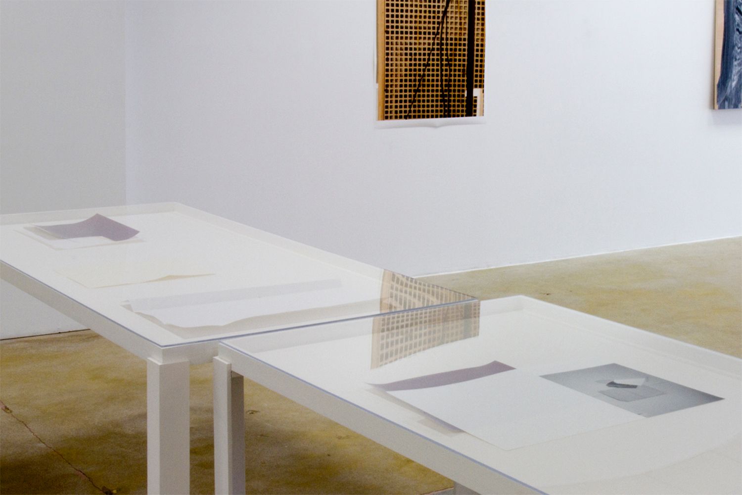 Cinq photographies tirage baryté, verre, installation sur table, 120 x 240 cm