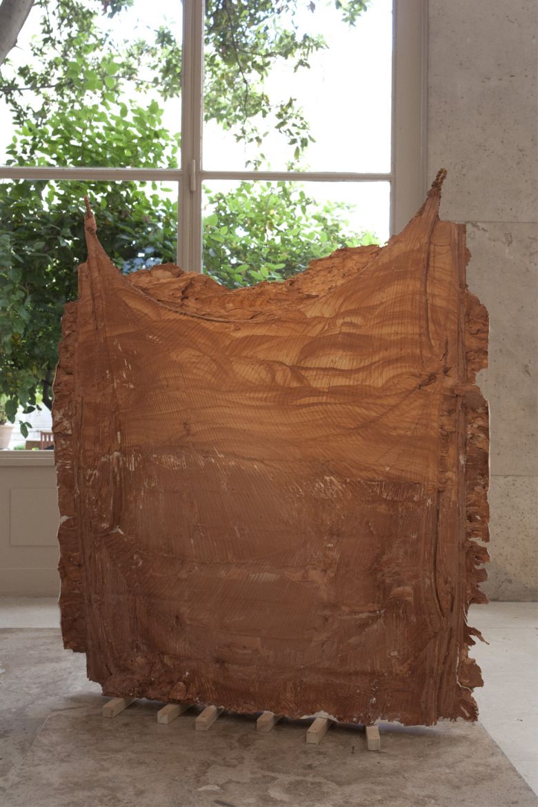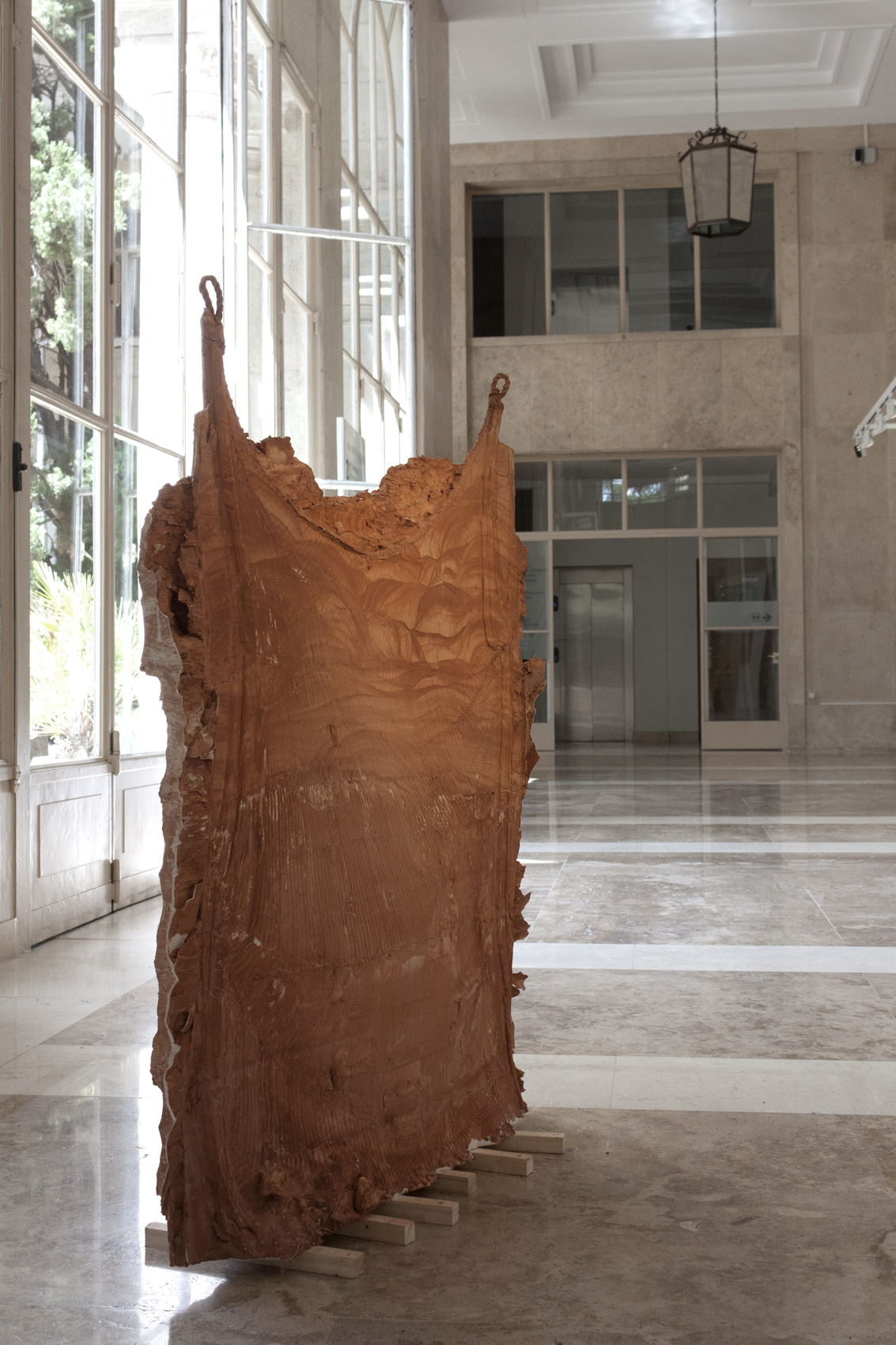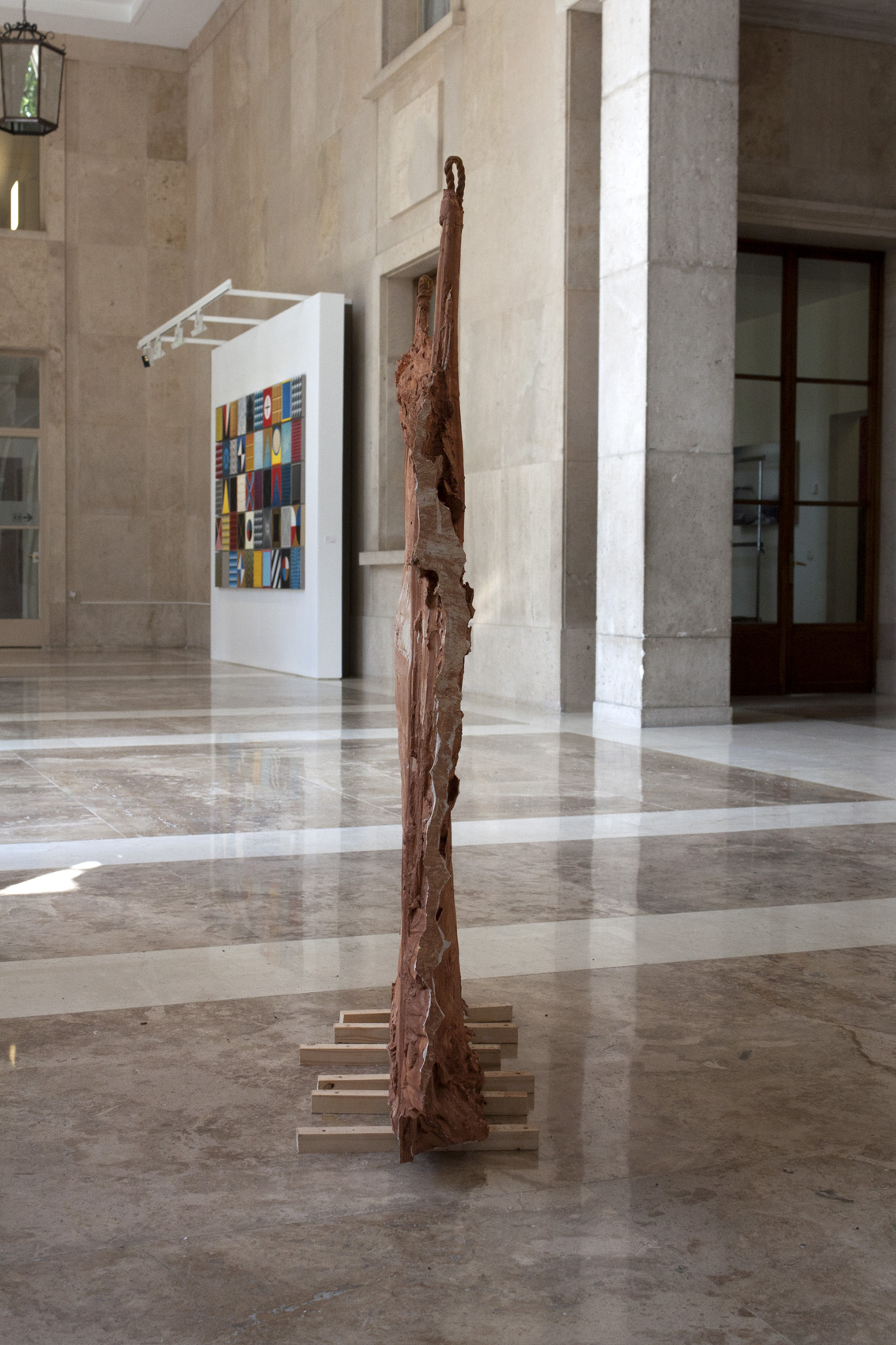 Plâtre, terre rouge, corde, 130 x 113 x 15 cm