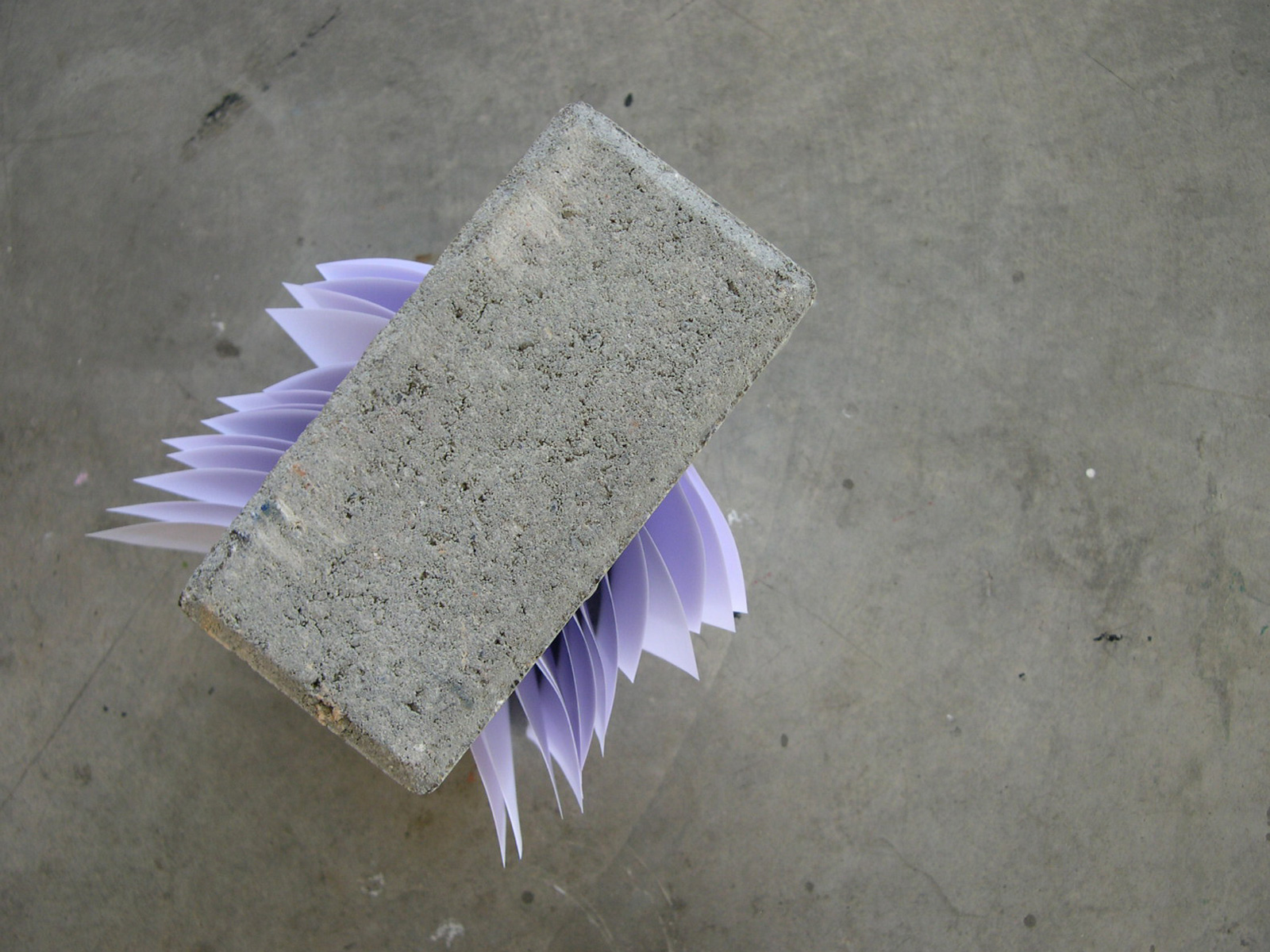 13 feuilles A4 80g/100 posées sur le sol, sur leurs tranches, portent une brique de 2,4 kg