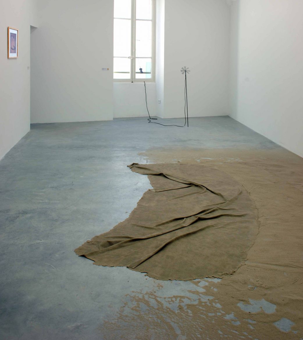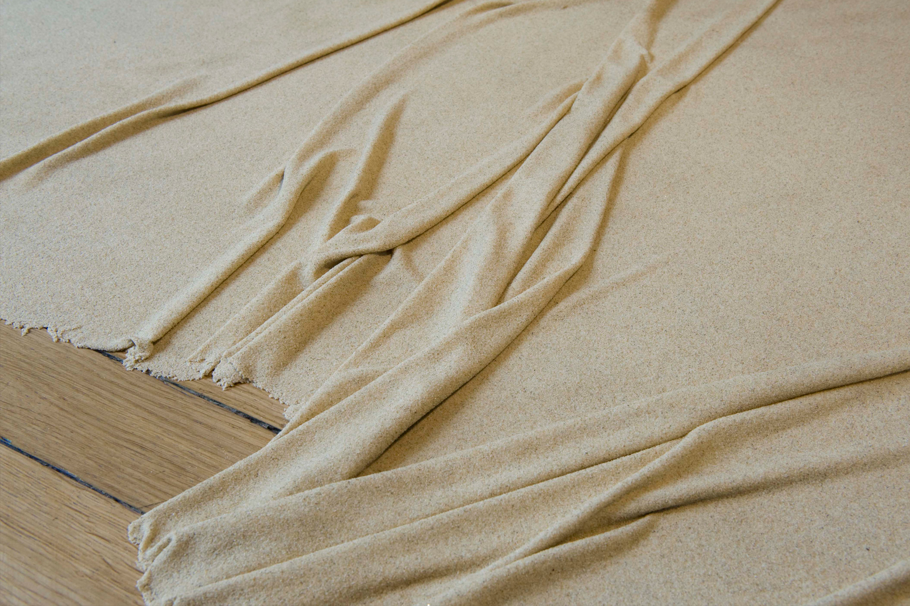 Le tissu de sable est une peau. La colle solidarise les grains de sable sur une fine épaisseur mais reste souple en séchant.