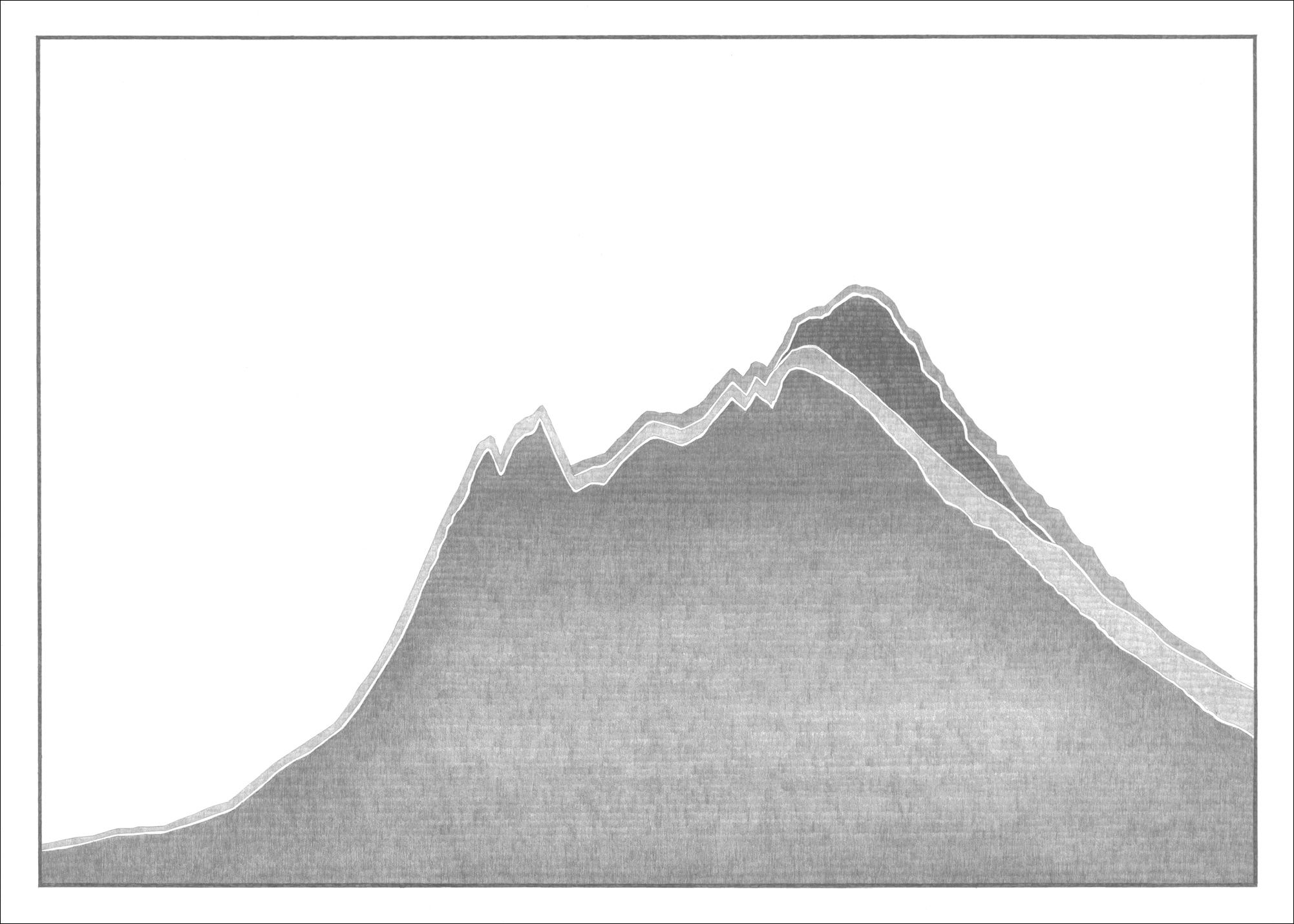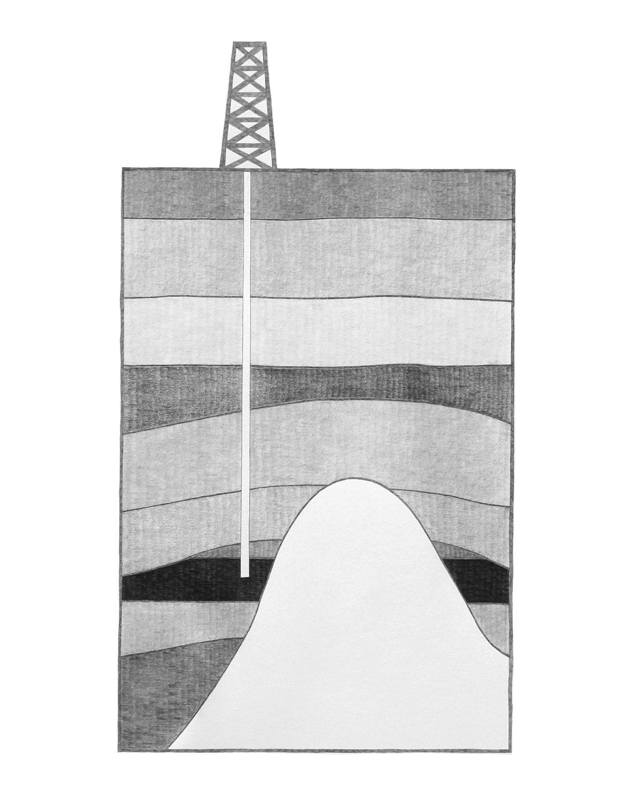 Le pic du pétrole, mine graphite sur papier, 50 x 70 cm, 2009, collection privée, France