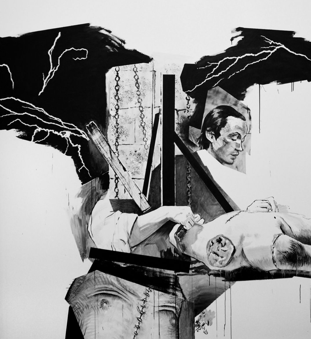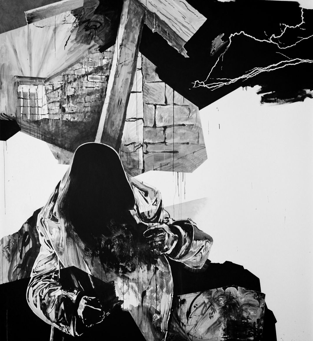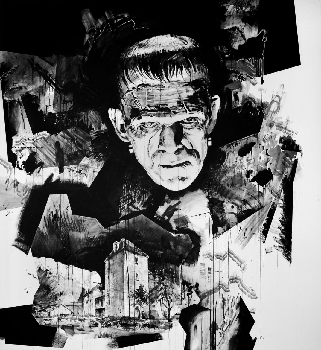 Wallpainting, acrylique noire, 1000 x 500 cm