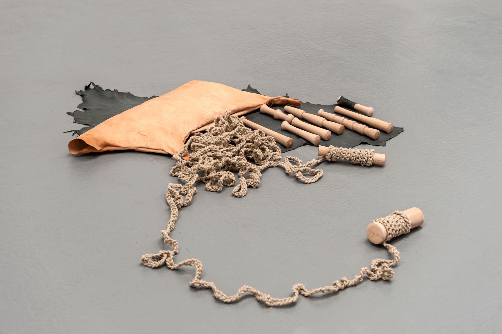 Cuir, hêtre, corde en chanvre, 140 x 150 x 20 cm