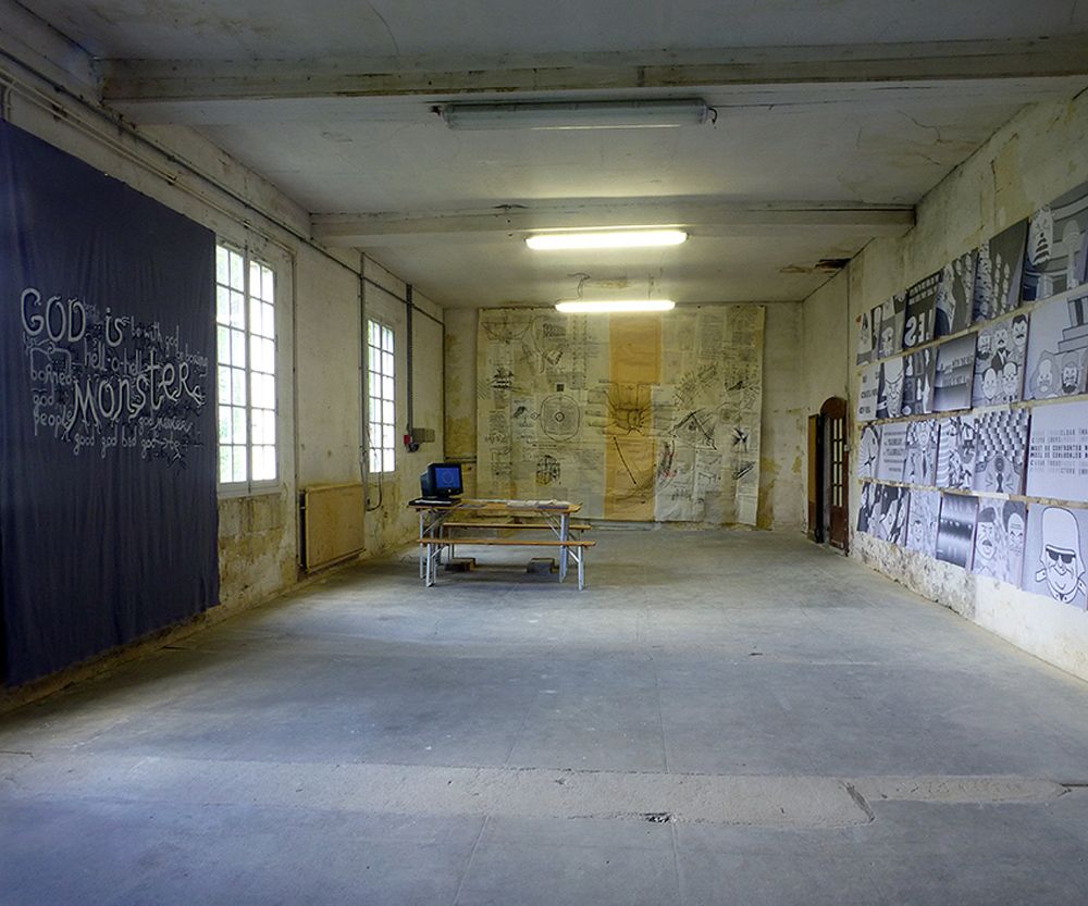 En conséquence, pour atteindre cet objectif, mes expositions devaient être créées à partir d'une base de fiction, d'un récit, qui leur permettait de se développer dans l'espace et dans le temps. Il fallait que l'histoire leur permette d'être politique, poétique et utopique, dans un espace de projection, mais également dans l'espace concret des expositions et manifestations.