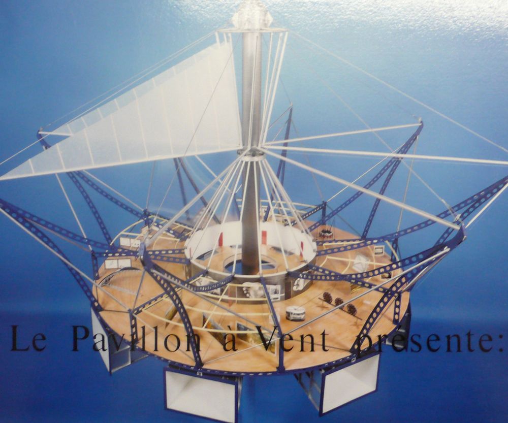 Le Pavillon à Vent était une proposition parfaite d'une machine célibataire et méta-structure répondant aux questions de l'exposition d'art, qui a ouvert, subtilement, un espace politique grâce au contenu d'une de ses expositions intitulée Le Manège des Douze +, un monument imaginé et construit pour l'inauguration du Marché Commun de 1992. Les manifestations étaient autant d'œuvres qui existaient par la représentation et la métaphore.