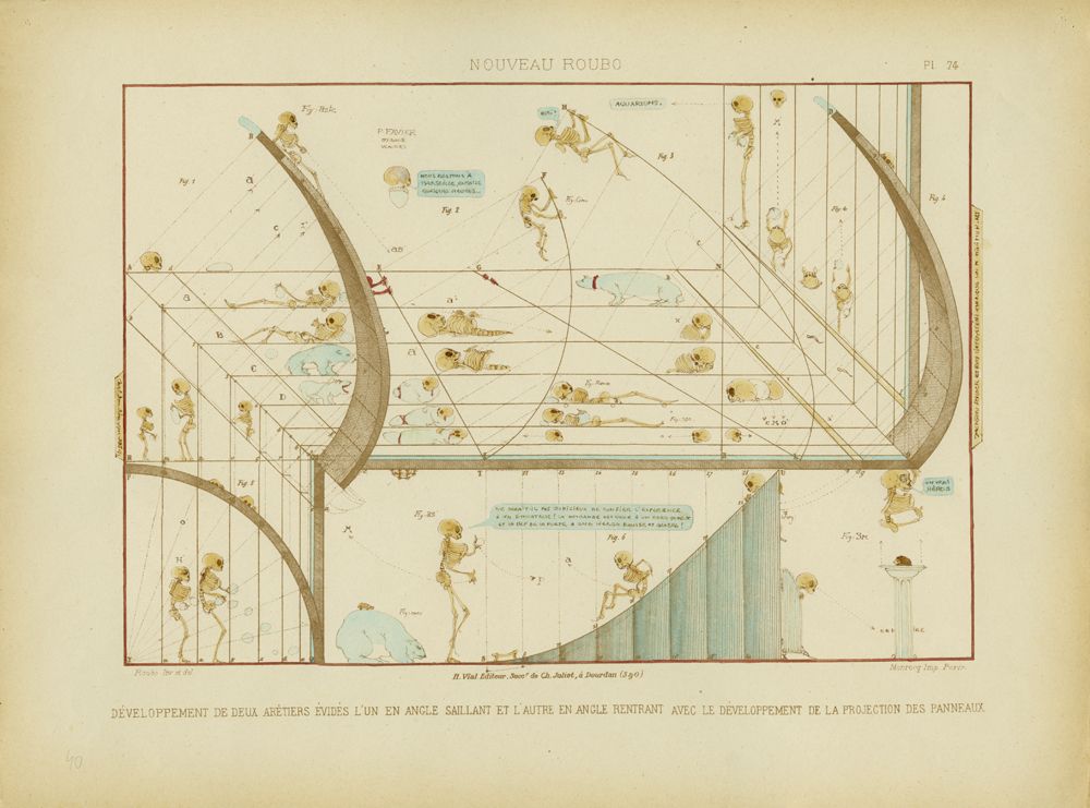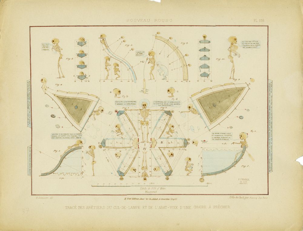 Encre et aquarelle sur gravures anciennes, dimensions variables
